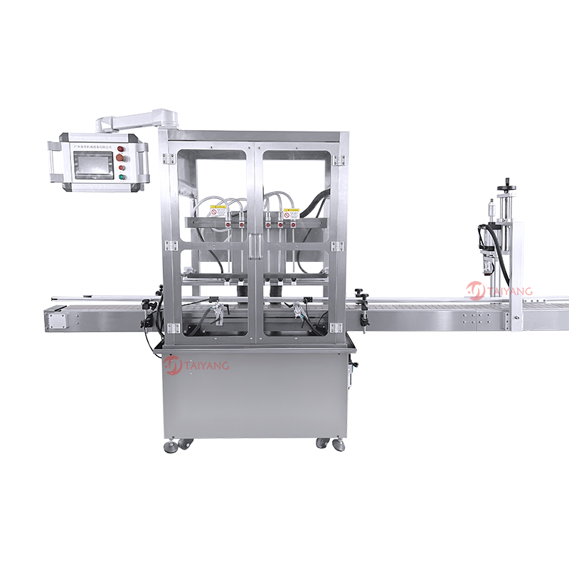 Bu Taiyang altı kafalı sıvı dolgu ve kapma makinesi esas olarak kozmetik, gıda endüstrisi ve şampuan, toner, losyon, temizleme sıvısı, vb. Bu Taiyang altı kafalı sıvı doldurma ve kapama makinesi, su bazlı ürünlerin üretimi için ideal bir ekipman seçimidir. Şişeleme hattında kaplama makinesi ve etiketleme makinesi ile entegre edilebilir. Taiyang makineleri tam işlevlere sahiptir ve akıllı kontrol avantajına sahiptir.